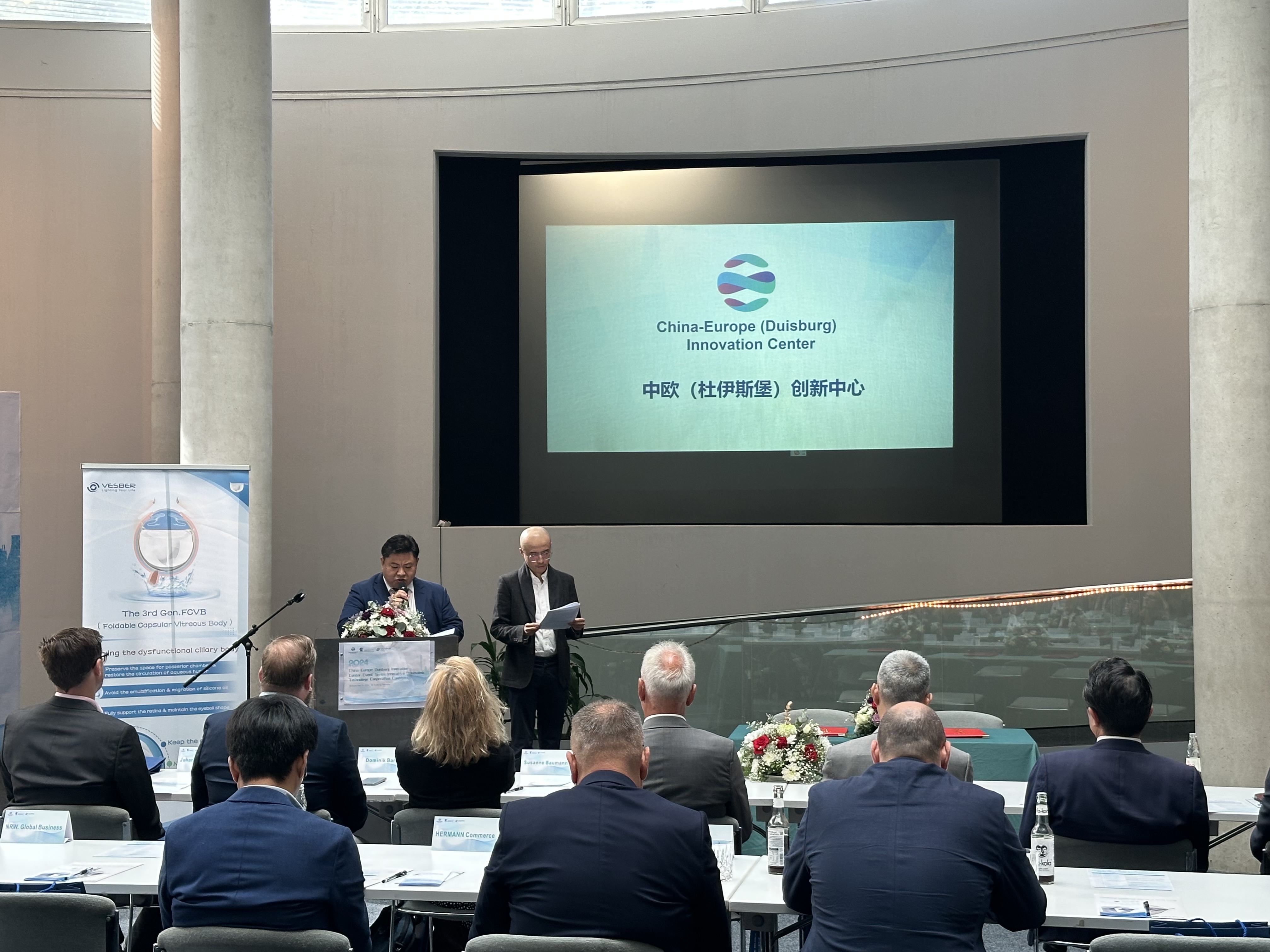2024年9月24日下午,协会联合中欧(杜伊斯堡)创新中心和广州卫视博生物科技有限公司在位于德国杜伊斯堡市的中欧(杜伊斯堡)创新中心举办了“眼科创新技术合作交流会”暨迎接新项目入驻活动。中国驻杜塞尔多夫总领馆商务参赞夏阳、德国北威州国际商务署大中华区经理苏珊·鲍曼、德国杜伊斯堡市政府中国事务专员陶逸泊、杜伊斯堡市商务与创新局国际项目主管多米尼克·巴茨、天津医科大学校长颜华等中德两地政府和眼科医疗领域代表亲临现场,来自中国和欧洲各国的多名眼科医疗领域知名专家学者和中德两地相关企业代表出席本次活动。