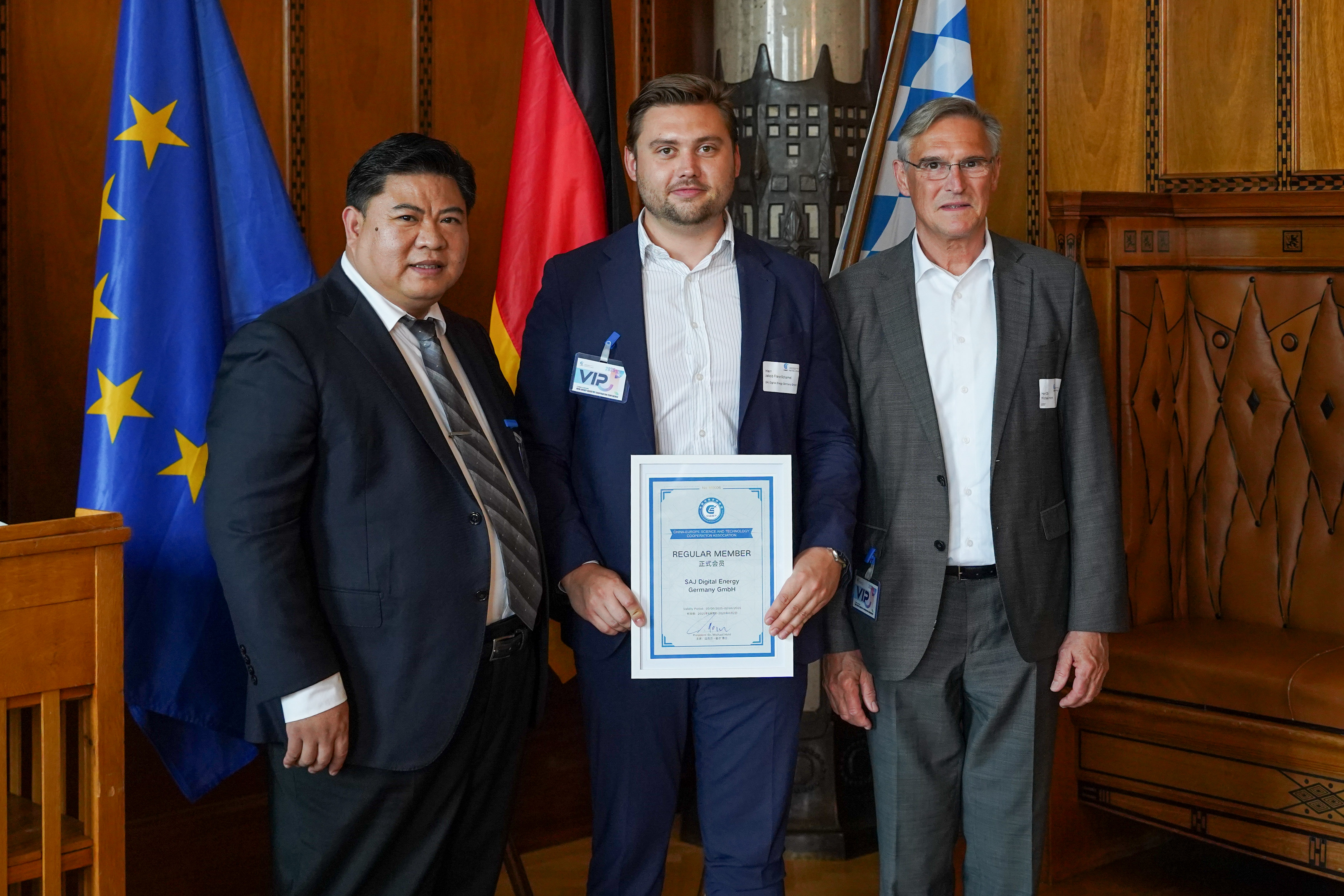 Während der Konferenz überreichten Dr. Hohl und Verbandsdirektor Zheng Yongqiang den neuen Mitgliedern DP Industrie, Sinexcel, and SAJ Digital Energy Germany GmbH. Mitgliedsurkunden in der Hoffnung, dass ihr Beitritt dem Verband neue Vitalität verleihen wird.