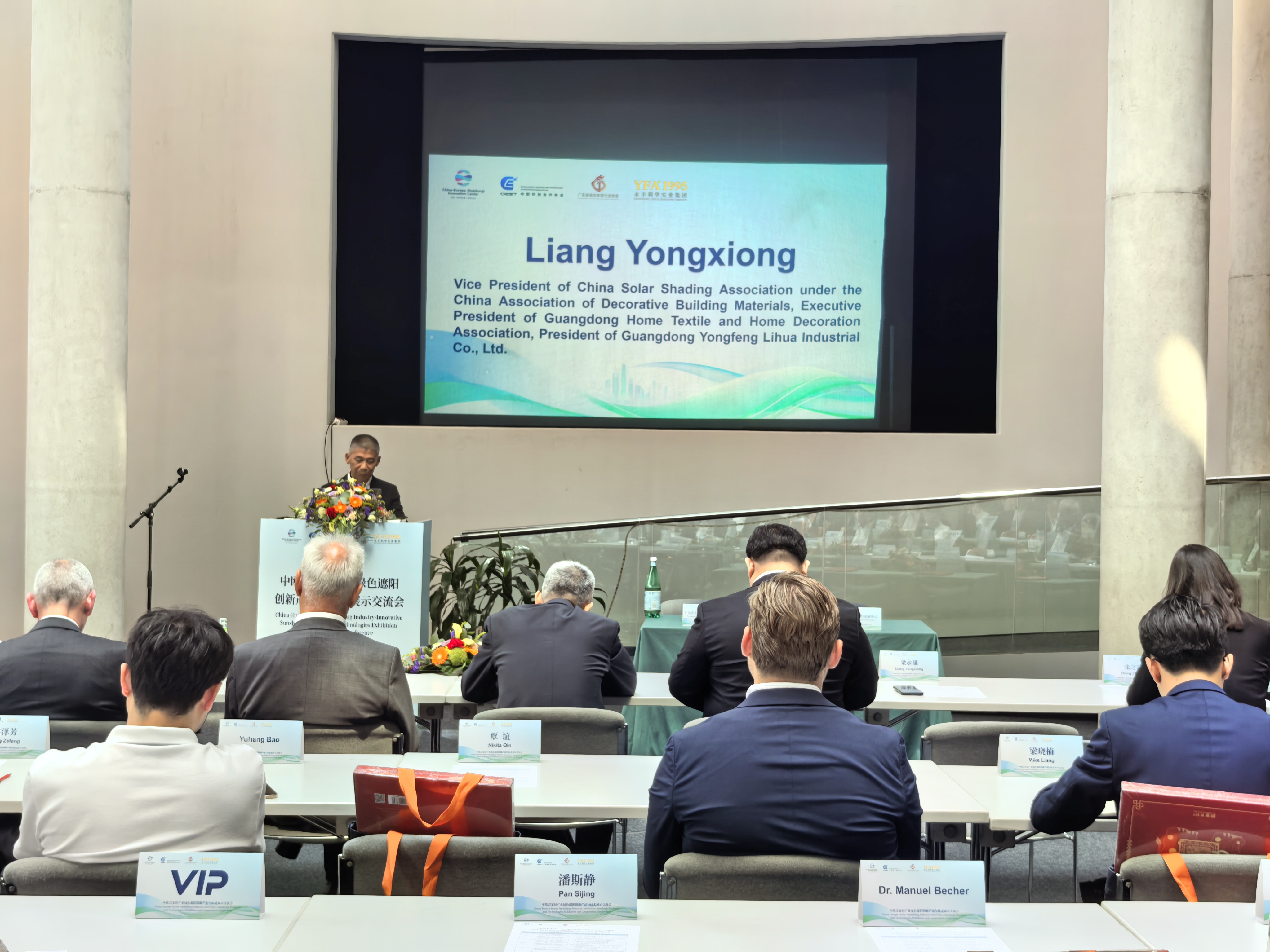 On June 25, 2025, the “China-Europe Home Furnishing Industry-Innovative Sunshade Products and Technologies Exhibition and Cooperation Conference” was held in Duisburg, Germany. Counselor Xia Yang and Consul Zhang Zhimiao from the Chinese Consulate General in Düsseldorf, Representative for Chinese Affairs of the City of Duisburg Markus Teuber, Head of the Office of Chinese Affairs of the City of Duisburg Johannes Grünhage, and Head of Business Unit | Settlements China of NRW. Global Business Frank Weidtmann, along with other representatives from enterprises, research institutions, and industry associations from both China and Europe attended the event. This conference was hosted by the China-Europe (Duisburg) Innovation Center and Guangdong Yongfeng Lihua Industrial Co., Ltd., and co-hosted by the China-Europe Science and Technology Cooperation Association and Guangdong Home Textile and Home Decoration Association.